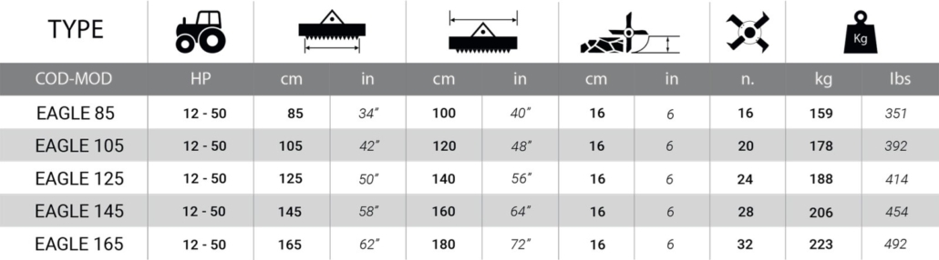EAGLE 105 105 cm / 42” 120 cm / 48” 178 kg 16 cm / 6” 20 12-50 KS